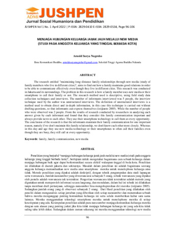 Arnold, Surya Nugroho (2022) Menjaga hubungan keluarga jarak jauh melalui new media (studi pada anggota keluarga yang tinggal berbeda kota). Jurnal Sosial Humaniora dan Pendidikan, 1 (1). pp. 96-106. ISSN 2829-0410
