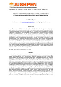 The research entitled "maintaining long-distance family relationships through new media (study of family members who live in different cities)", aims to find out how a family maintains good relations in order to be able to communicate effectively even though they live in different cities. This research was conducted in Jakarta and its surroundings. The problem in this research is how a family member uses new media or their smartphone to call their family or not. The research method used is descriptive, using field study data collection techniques and interviews. The number of informants interviewed was 5 people, the interview technique used by the author was unstructured interviews. The definition of unstructured interviews is a method used to obtain direct and in-depth information, in this case this technique is carried out without drafting questions, so that informants can express themselves (istijianto 2005). While the number of people who were observed was 2 people. From the results of research conducted by researchers in analyzing each answer given by each informant and found that they consider this family communication important and always provide news to each other. They use their smartphone technology to call them at every opportunity. The conclusion of the research is that the informants maintain their family communication for one important reason, namely if we don't maintain this family relationship, we don't know each other more closely. Whereas in this day and age they use new media technology or their smartphones to often call their families even though they are busy, they still call at every opportunity.