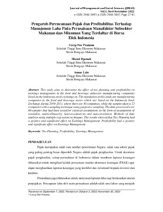 analysis using multiple regression techniques. The results showed that Tax Planning had a positive and significant effect on Earnings Management, Profitability had a positive