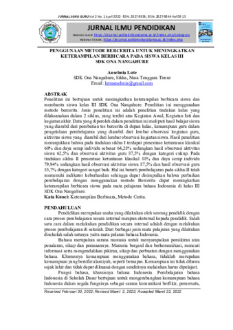 Anselmia, Lute (2022) Penggunaan metode bercerita untuk meningkatkan keterampilan berbicara pada siswa kelas III SDK Ona Nangahure. Jurnal Ilmu Pendidikan (SOKO GURU), 2 (1): 2. pp. 8-13. ISSN 2827-8836
