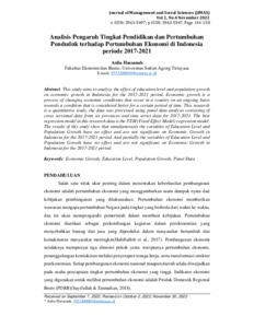 This study aims to analyze the effect of education level and population growth on economic growth in Indonesia for the 2017-2021 period. Economic growth is a process of changing economic conditions that occur in a country on an ongoing basis