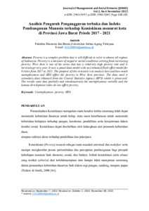 increasing every year. It uses a panel data model with an estimated fixed effect model for 9 cities from 2017 to 2021. The purpose of this research is to analyze how and how much unemployment and HDI affect the poverty in West Java province. The data used is