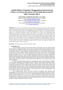 Teguh, Widodo and Sufarddin, Bin Hasaruddin and Nur, Wening (2022) Analisis budaya organisasi menggunakan Organizational Culture Assessment Instrument (OCAI) pada karyawan PT Eddy Transport Raya. Journal of Management and Social Sciences, 1 (4). pp. 182-193. ISSN 2963-5047
