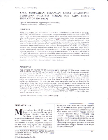 Efek Perubahan Tegangan Lensa Kuadrupol Terhadap Kualitas Berkas Ion Pada Mesin Implantor Ion P3TM.pdf - Published Version