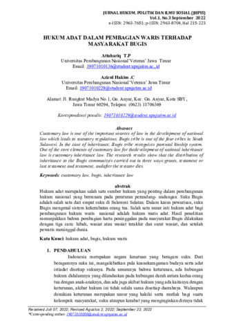 Attahariq T.P., Attahariq and Azizul, Hakim (2022) Hukum adat dalam pembagian waris terhadap masyarakat Bugis. Jurnal Hukum, Politik dan Ilmu Sosial, 1 (3): 19. pp. 215-223. ISSN 2963-8704