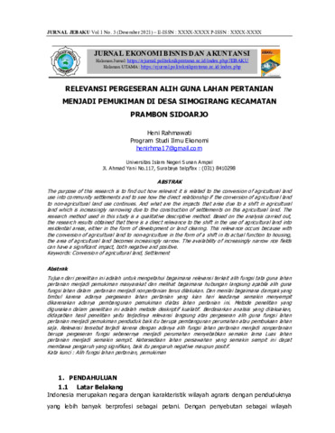 Heni, Rahmawati (2021) Relevansi pergeseran alih guna lahan pertanian menjadi pemukiman di Desa Simogirang Kecamatan Prambon Sidoarjo. Jurnal Ekonomi Bisnis dan Akuntansi, 1 (3): 9. pp. 74-86. ISSN 2827-8364