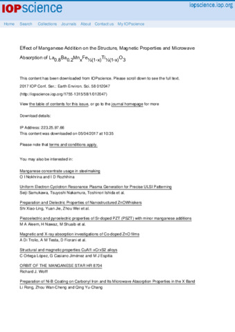 Effect of Manganese Addition on the Structure, Magnetic Properties and Microwave Absorption of La0.8Ba0.2MnxFe½(1-x)Ti½(1-x)O3.pdf - Published Version