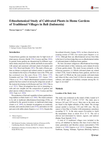 Wawan, Sujarwo and Giulia, Caneva (2015) Ethnobotanical study of cultivated plants in home gardens of traditional villages in Bali (Indonesia). Human Ecology, 43. pp. 769-778. ISSN 15729915