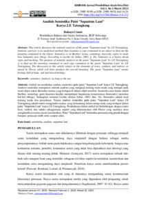 Artikel ini membahas analisis semiotika pada puisi “Sepantun Laut” karya J.E Tatengkeng. Analisis semiotika merupakan metode analisis yang mengkaji tentang suatu tanda yang terdapat pada suatu objek untuk diketahui makna yang terdapat di dalam objek tersebut. Semiotika atau dalam istilah Barthes, semiologi, pada dasarnya hendak mempelajari bagaimana kemanusiaan (humanity) memakai hal-hal (things). Sedangkan menurut Lechte (dalam Sobur, 2003, hlm. 16), Semiotika adalah teori tentang tanda dan penandaan. Tujuan analisis semiotika pada puisi “Sepantun Laut” karya J.E Tatengkeng adalah untuk mengetahui makna yang terkandung dalam setiap tanda yang terdapat dalam puisi “Sepantun Laut” karya J.E Tatengkeng. Pembahasan dalam artikel ini berhubungan dengan unsur ikon, simbol, dan indeks sebagaimana seperti yang dikemukakan oleh Pierce yang nantinya akan menghasilkan makna secara keseluruhan. Puisi “Sepantun Laut” bermakna perasaan yang penuh dengan harapan, perasaan sedih serta campur aduk.