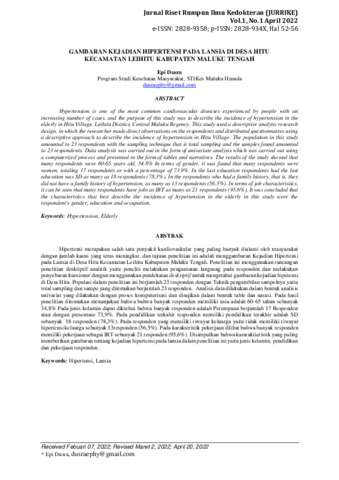 Epi, Dusra (2022) Gambaran kejadian hipertensi pada lansia di Desa Hitu Kecamatan Leihitu Kabupaten Maluku Tengah. Jurnal Riset Rumpun Ilmu Kedokteran, 1 (1): 7. pp. 52-56. ISSN 2828-934X