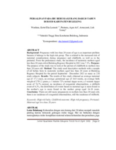 | Uncontrolled Keywords: | Bayi risiko tinggi, Hasil persalinan, Kehamilan risiko tinggi, Perinatal, Usia ibu kurang dari 20 tahun |