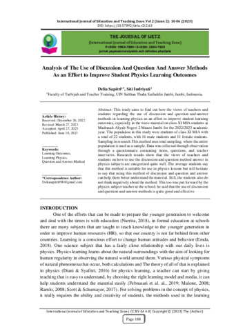| Uncontrolled Keywords: | Learning outcomes, Learning physics, Question and answer method, Physical education, Academic achievement |