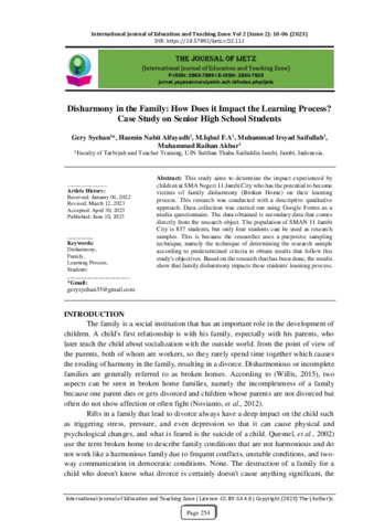Gery, Syehan and Hazmin Nabit, Alfayadh and M. Iqbal, F.A. and Muhammad Irsyad, Saifullah and Muhammad Raihan, Akbar (2023) Disharmony in the family: how does it impact the learning process? case study on senior high school students. International Journal of Education and Teaching Zone, 2 (2): 8. pp. 254-263. ISSN 2963-7899