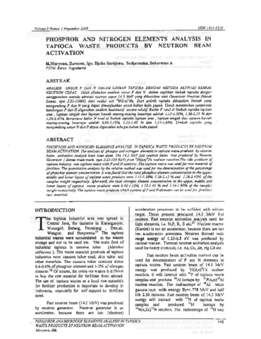 BEAM ACTIVATION. The analysis of phospor and nitrogen elements in tapioca wasteproducts by neutron'