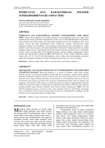 Kata kunci : selulosa, ampas tebu, polimer superabsorben, mesin berkas elektron.