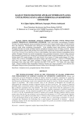 KAJIAN TEKNO EKONOMI APLIKASI NITRIDASI PLASMA UNTUK PENGUATAN