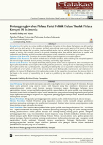Armelia, Febryanti Waas (2023) Pertanggung jawaban pidana partai politik dalam tindak pidana korupsi di Indonesia. Matakao Corruption Law Review, 1 (1): 7. pp. 87-94. ISSN 2987-7172