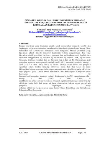 Tujuan penelitian yang dilakukan adalah untuk mengetahui pengaruh konflik dan lingkungan kerja secara simultan terhadap efektivitas kerja pegawai pada kantor Dinas Pendidikan dan Kebudayaan Kabupaten Musi Banyuasin. Metode penelitian yang digunakan adalah metode deskriptif kuantitatif. Teknik pengumpulan data yang digunakan adalah penelitian kuesioner, observasi dan studi dokumentasi. Analisis data dilakukan menggunakan uji validitas, uji reliabilitas, uji asumsi klasik, regresi linier berganda, koefisien korelasi dan uji hipotesis (uji t dan uji F). Berdasarkan hasil pengujian hipotesis secara parsial variabel konflik (X1) menunjukkan nilai t hitung> t tabel (2,717> t tabel 1,983), maka Ho ditolak, artinya secara parsial adapengaruh signifikan antara konflik terhadap efektivitas kerja, Jadi dari kasus ini dapat disimpulkan bahwa secara parsial terdapat pengaruh antara konflik terhadap efektivitas kerja pegawai pada kantor Dinas Pendidikan dan Kebudayaan Kabupaten Musi Banyuasin. Sedangkan hasil pengujian hipotesis variabel lingkungan kerja (X2) menunjukkan nilai t hitung> t tabel (2,463> t tabel 1,983), maka H0 ditolak, artinya secara parsial ada pengaruh signifikan lingkungan kerja terhadap efektivitas kerja. Jadi dari kasus ini dapat disimpulkan bahwasecara parsial ada pengaruh lingkungan kerja terhadap efektivitas kerja pegawai pada kantor Dinas Pendidikan dan Kebudayaan Kabupaten Musi Banyuasin.