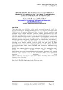 Heriyana, Heriyana and Rully, Alamsyah and Neti, Erlina (2023) Pengaruh konflik dan lingkungan kerja terhadap efektivitas kerja pegawai pada Dinas Pendidikan dan Kebudayaan Kabupaten Musi Banyuasin. Jurnal Manajemen Kompeten, 6 (1): 7. pp. 58-63. ISSN 2621-5381