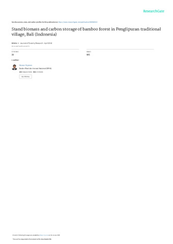 Wawan, Sujarwo (2016) Stand biomass and carbon storage of bamboo forest in Penglipuran traditional village, Bali (Indonesia). Journal of Forestry Research, 27 (4). pp. 913-417. ISSN 1007-662X