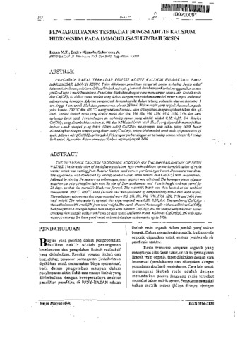 PENGARUH PANAS TERHADAP FUNGSI ADITIF KALSIUM HIDROKSIDA PADA IMMOBILISASI LIMBAH RESIN. Telah dilakukan penelitian pengaruh panas terhadap fungsi aditif
