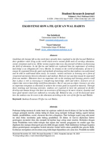 | Uncontrolled Keywords: | Eksistensi siswa, Al Quran, Al Hadits |