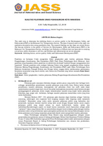 A.M. Fadly, Mappisabbi (2023) Kualitas pelayanan Dinas Perhubungan Kota Makassar. Journal of Administrative and Sosial Science, 3 (1): 3. pp. 30-43. ISSN 2828-6359