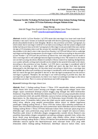 Umar, Faruq (2022) Tinjauan yuridis terhadap perkawinan di bawah umur dalam Undang-Undang No. 1 tahun 1974 dan kaitannya dengan hukum Islam. Al Fuadiy: Jurnal Hukum Keluarga Islam, 4 (1): 5. pp. 49-62. ISSN 2964-6480