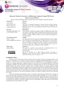 Purpose: This study was conducted to determine (1) the growth of the number of scientific publications in the field of E-tourism, (2) the number of publications per field/subject, and (3) the map of publication development based on keywords and publication year. Methodology This study used a quantitative descriptive method with bibliometric analysis. Data was collected by searching through the Google Scholar database with the keyword "E-tourism" with the category "keywords for 2012–2022 using Publish or Perish 8 software. In addition, VOSviewer software is used to analyze the publication of development maps. Findings The study results show that the growth of scientific publications in land e-tourism shows fluctuations and an increasing trend. The highest increase will occur in 2022, with 41 documents (13.67%). Most subjects and subjects are in the fields of services, development, technology, and systems. While the keywords that appear the least are effort and challenge. The interrelationships between topics are grouped into eight clusters, seen through network visualization. Implication This research is expected to assist researchers in determining themes to be researched and can also be a reference for tourism research.