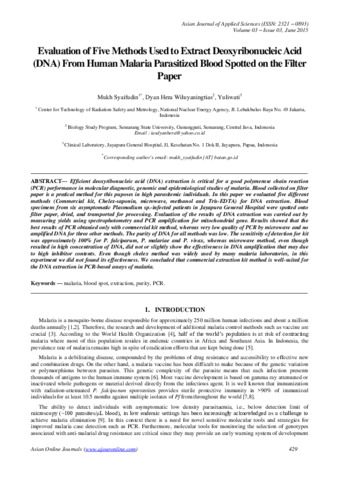 (PCR) performance in molecular diagnostic, genomic and epidemiological studies of malaria. Blood collected on filter