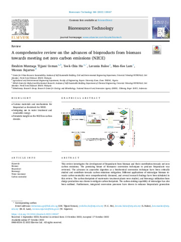 Ibrahim, Muntaqa Tijjani Usman and Yeek-Chia, Ho and Lavania, Baloo and Wawan, Sujarwo (2022) A comprehensive review on the advances of bioproducts from biomass towards meeting net zero carbon emissions (NZCE). Bioresource Technology, 366. p. 128167. ISSN 1873-2976