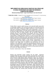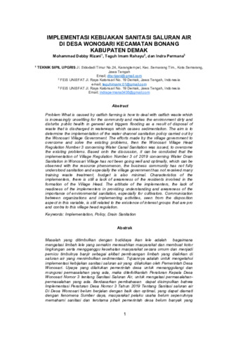 Debby Rizani, Debby Rizani and Teguh, Imam Rahayu and Indra, Permana (2021) Implementasi kebijakan sanitasi saluran air di Desa Wonosari Kecamatan Bonang Kabupaten Demak. Public Service and Governance Journal, 2 (1): 2. pp. 12-20. ISSN 2963-7252