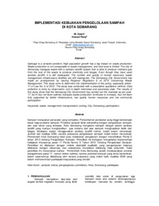 M., Daeni and Husnul, Rizqi (2021) Implementasi kebijakan pengelolaan sampah di Kota Semarang. Public Service and Governance Journal, 2 (1): 9. pp. 96-107. ISSN 2963-7252