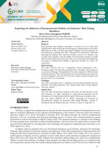 Mercy Ejovwokeoghene, Ogbar (2023) Exploring the influence of entrepreneurial abilities on graduates' risk-taking readiness. Journal of Entrepreneurial and Business Diversity, 1 (1): 8. pp. 59-71. ISSN 2985-5365