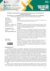 Ni Kadek, Dwi Ayu Anggreni and I Made, Sara and Komang Adi, Kurniawan Saputra (2023) The effect of sustainability accounting, work environment, and leadership on employee performance. Journal of Entrepreneurial and Business Diversity, 1 (1): 9. pp. 72-77. ISSN 2985-5365