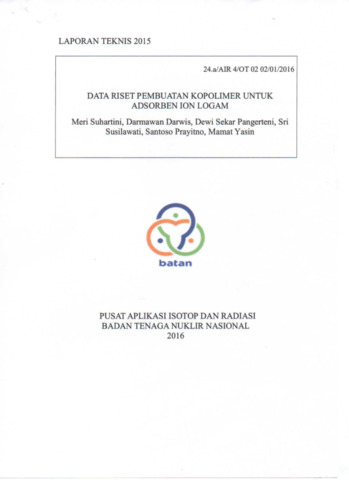 Suhartini, Meri and Darwis, Darmawan and Pangerteni, Dewi Sekar and Susilawati, Sri and Prayitno, Santoso and Yasin, Mamat (2016) Laporan Usulan Penelitian 2015: DATA RISET PEMBUATAN KOPOLIMER UNTUK ADSORBEN ION LOGAM. Technical Report. PAIR - BATAN.