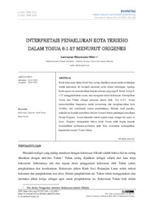 Luccianus, Oktavianus Mite (2023) Interpretasi penaklukan Kota Yerikho dalam Yosua 6:1-27 menurut Origenes. Divinitas: Jurnal Filsafat dan Teologi Kontekstual, 1 (2): 8. pp. 225-232. ISSN 2988-5434
