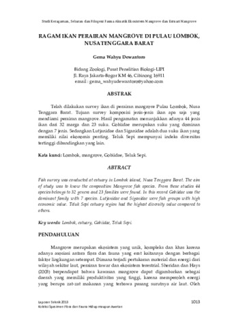Gema, Wahyu Dewantoro (2013) Ragam ikan perairan mangrove di Pulau Lombok, Nusa Tenggara Barat. Technical Report. Pusat Penelitian Biologi-LIPI, Cibinong.