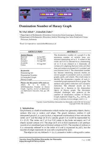 M., Ulul Albab and Zainullah, Zuhri (2023) Domination number of harary graph. Vygotsky: Jurnal Pendidikan Matematika dan Matematika, 5 (1): 6. pp. 135-144. ISSN 2656-2286