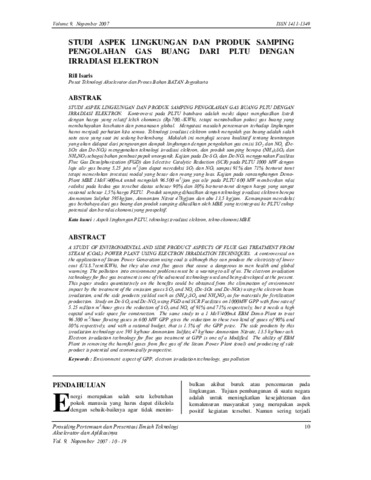 Kata kunci : Aspek lingkungan PLTU, teknologi irradiasi elektron, tekno ekonomi MBE