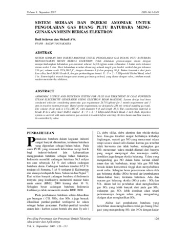 Setiawan, Budi and AW, Muhadi (2007) SISTEM SEDIAAN DAN INJEKSI AMONIAK UNTUK PENGOLAHAN GAS BUANG PLTU BATUBARA MENGGUNAKAN MESIN BERKAS ELEKTRON. In: Pertemuan dan Presentasi Ilmiah Teknologi Akselerator dan Aplikasinya, 7 November 2007, Yogyakarta.