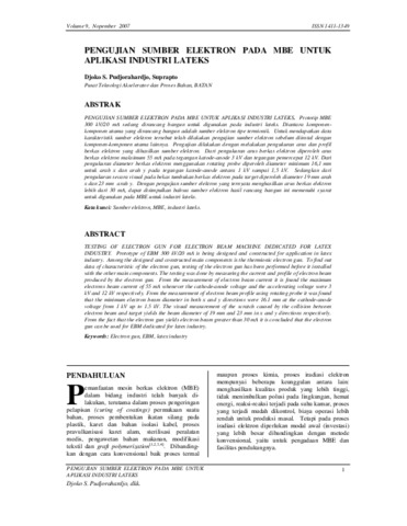 Kata kunci: Sumber elektron, MBE, industri lateks.