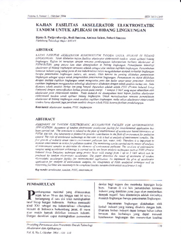 Kajian Fasilitas Akselerator Elektrostatik Tandem Untuk Aplikasi Di Bidang Lingkungan.pdf - Published Version