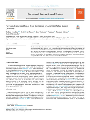 Iwashina, Tsukasa and Destri, Destri and Sri, Rahayu and Didik, Widyatmoko (2020) Flavonoids and xanthones from the leaves of Amorphophallus titanium (Araceae). Biochemical Systematics and Ecology, 90. p. 104036. ISSN 1873-2925