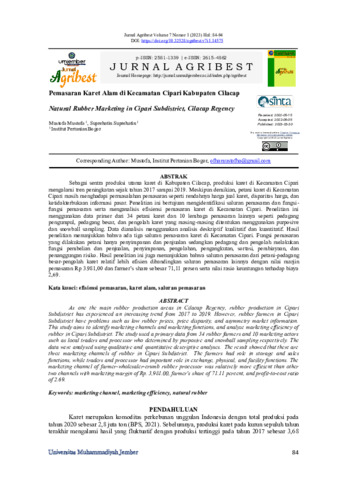 Mustofa, Mustofa and Suprehatin, Suprehatin (2023) Pemasaran karet alam di Kecamatan Cipari Kabupaten Cilacap. Jurnal Agribest, 7 (1): 7. pp. 84-94. ISSN 2581-1339