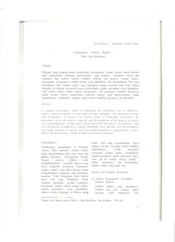 Rindayani, Rini (2006) Pengamanan Sumber Radiasi. Widyanuklida, 7 (2). pp. 1-6. ISSN 1410-5357