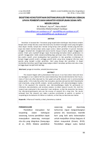 M., Ridlwan and Asy’ari, Asy’ari and Ratno, Abidin (2023) Eksistensi keikutsertaan ekstrakurikuler pramuka sebagai upaya pembentukan karakter kedisiplinan siswa MTs Negeri Gresik. Didaktis: Jurnal Pendidikan dan Ilmu Pengetahuan, 23 (1): 10. pp. 99-114. ISSN 1412-5889