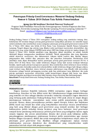 Agung, Ayu Md Senjiliana and Berchah, Pitoewas and Nurhayati, Nurhayati (2023) Penerapan prinsip good governance menurut Undang-Undang Nomor 6 Tahun 2014 dalam tata kelola pemerintahan. Journal of Education Religion Humanities and Multidiciplinary, 1 (1): 4. pp. 31-38. ISSN 3025-7999