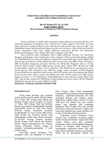 Resty, Marianty and Heru, Hardy Mooy (2022) Efektivitas retribusi izin mendirikan bangunan di Kabupaten Timor Tengah Utara. Equilibrium: Jurnal Akuntansi dan Manajemen, 9 (-): 6. pp. 54-60. ISSN 2620-3790
