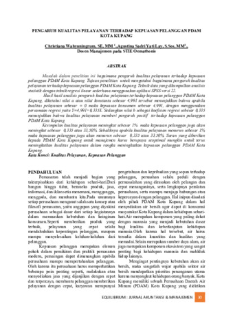 Christiana, Wahyuningrum and Agustina, Sadri Yati Lay (2023) Pengaruh kualitas pelayanan terhadap kepuasan pelanggan PDAM Kota Kupang. Equilibrium: Jurnal Akuntansi dan Manajemen, 11 (-): 4. pp. 30-40. ISSN 2620-3790